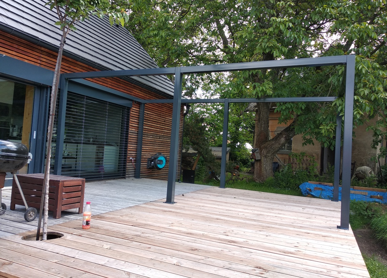 Kombinujeme dřevo, ocel i zkušenosti tak, aby vznikl prostor, který vydrží roky. Zakázková pergola a terasa na míru.